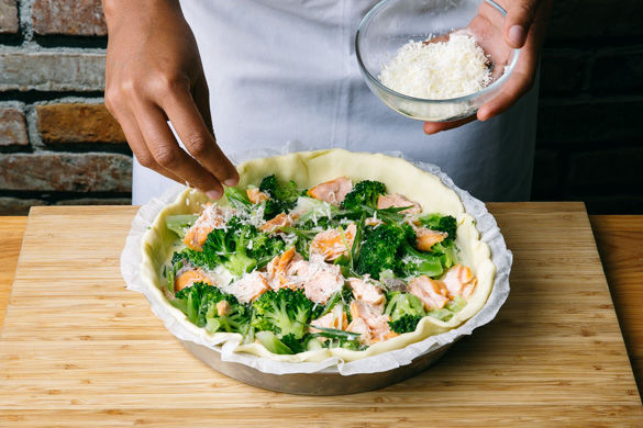 Knuspriger Teig mit einer herzhaften Füllung aus Käse und cremiger Eiermilch – eine unschlagbare Kombination aus der französischen Küche! Die Quiche lässt sich ideal als leckeres Abendessen vorbereiten, und meist bleibt sogar noch ein Stück für den nächsten Tag für das Mittagessen übrig. Obwohl wir das bei dieser köstlichen Quiche mit saftigem Räucherlachs und knackigem Brokkoli nicht garantieren können ...