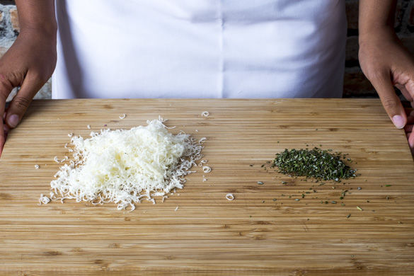 In einem mittleren Topf ausreichend Salzwasser für die Pasta aufsetzen. Die Salami in feine Streifen schneiden.