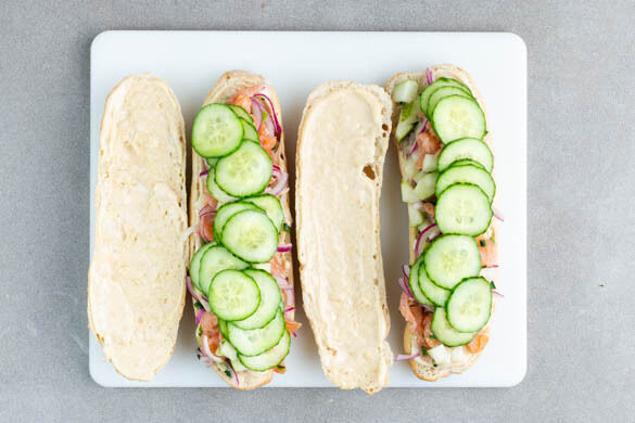 Heute haben die Pfannen mal Pause: Der edle Räucherlachs braucht nämlich keine Hitze, um seinen besonderen Geschmack zur Geltung zu bringen. Allerdings finden wir, dass er als Tatar mit fruchtiger Birne, pikanter Jalapeño und kühlender Gurke einfach fantastisch schmeckt und haben ihn auf diese Weise ruckzuck in ein krosses Baguette gesteckt. Ein frisches Ingwer-Karottensalätchen dazu? Euer Genuss ist unsere Inspiration.