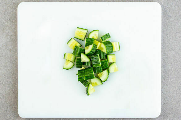 Die Gurke in 1–2cm große Würfel schneiden.
