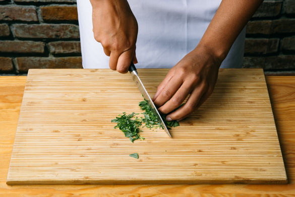 Zum Schluss die Blätter des Estragons vom Stängel zupfen und fein schneiden und die Tarte damit garnieren. Mit dem Forellendip servieren.