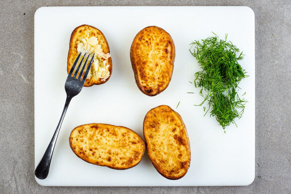 „Kumpir“ beschreibt im Türkischen die allseits beliebte Ofen- oder Folienkartoffel und stammt streng genommen aus dem deutschen Wort „Grundbirne“. Linguistische Feinheiten beiseite, bei der Füllung des besagten Erdapfels werden unserer Fantasie jedenfalls keine Grenzen gesetzt. So präsentiert sich die stolze Kartoffel heute mit einem cremigen Hütchen aus geräucherter Makrele, würzigen Kapern und frischem Dill. Einfach schick!