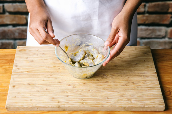 Den Backofen auf 180°C Umluft oder 190°C Ober-/Unterhitze vorheizen. Die Garnelen nach Geschmack mit der Misopaste marinieren.