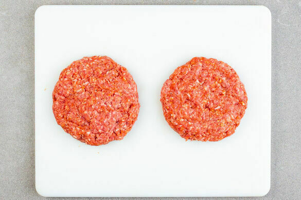 Das Hackfleisch mit dem restlichen Bratkartoffelgewürz und je 2 kräftigen Prisen Salz und Pfeffer gut verkneten und zu 4 gleich großen, ca. 1cm dicken Pattys formen.