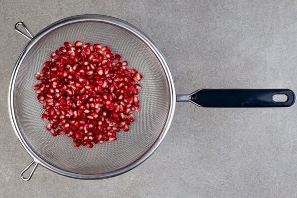 Den Granatapfel halbieren und über einer mit Wasser gefüllten Schüssel aufbrechen. Die Granatapfelkerne unter Wasser aus den Fruchtwänden und Häutchen lösen. Die schwimmenden Häutchen mit einem Löffel abschöpfen, dann die gepulten Granatapfelkerne in ein Sieb abgießen. Den Brotpudding mit dem Ahornsirup, den Orangen und den Granatapfelkernen garnieren und servieren.