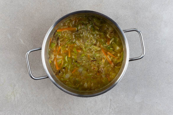 Die Fenchelsamen und den Gemüsemix in einem großen Topf mit 1EL Olivenöl bei starker Hitze 3–5Min. anbraten, bis das Gemüse goldbraun ist.