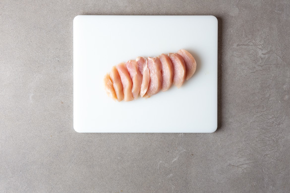 Das Fleisch trocken tupfen und in ca. 1cm dicke Scheiben schneiden.
