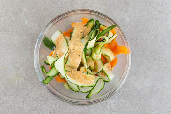 Die BBQ-Sauce mit der ½ der Sojasauce, 2TL Honig, 2TL Mehl, 2EL Wasser und 1 kräftigen Prise Pfeffer zu einer Würzsauce verrühren. Den Knoblauch schälen, fein würfeln und mit der restlichen Sojasauce, 2EL Mayonnaise und 1 kräftigen Prise Pfeffer zu einem Dressing verrühren.
