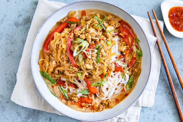 Unsere kulinarische Reise führt uns heute nach China, wo dieser Klassiker herkommt, in dem scharfe, süße und nussige Aromen perfekt zusammenfinden. Saftiges Schweinehackfleisch, leckere Reisbandnudeln und ein knackiger Gemüsemix mit Lauch, Spitzkohl und Paprika sind die Hauptkomponenten. Übrigens: Der Name „Dan Dan“ kommt von den Tragestangen, auf denen die Straßenverkäufer traditionell ihre Nudeltöpfe befestigt haben.