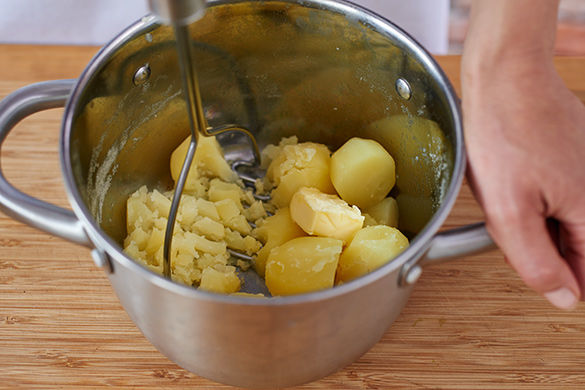 Die Kartoffeln schälen und je nach Größe halbieren oder vierteln. In einem mittelgroßen Topf ausreichend leicht gesalzenes Wasser zum Kochen bringen, die Kartoffeln hineingeben und in 10–20Min. weich kochen.