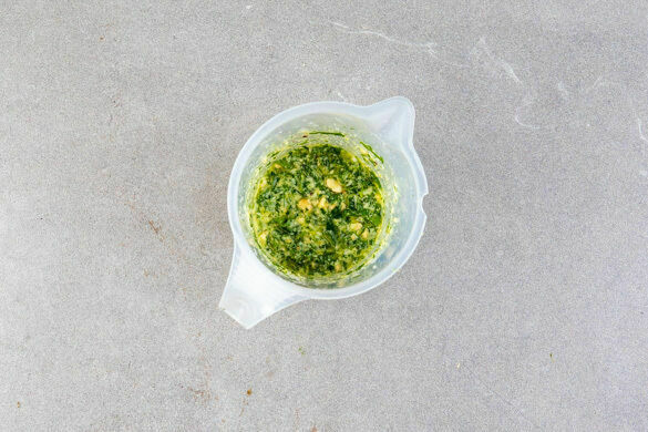 Die Zitronenschale fein abreiben, dann die Zitrone halbieren und auspressen. Den Käse fein reiben. Die Petersilie grob hacken. Die Nüsse mit 1–2TL Zitronenschale, der 1/2 des Käses, der Petersilie und je 2EL Zitronensaft, Olivenöl und Wasser grob pürieren. Ggf. etwas mehr Wasser zugeben und die Gremolata mit Salz, Pfeffer und Zitronensaft abschmecken.