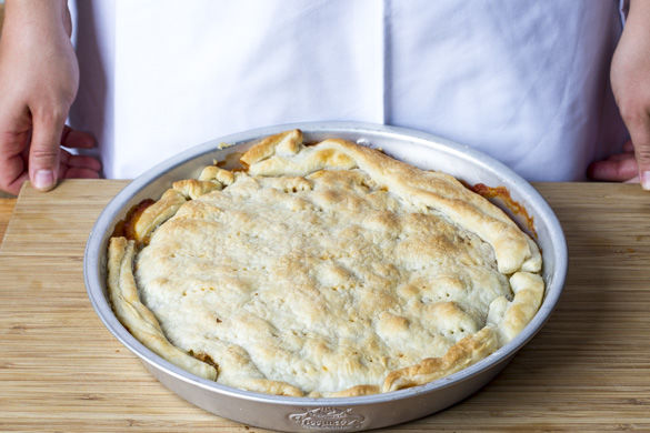 Unsere Köchin Hannah liebt Gerichte mit einer scharfen Note. Du auch? Dann probier diesen krossen, vegetarischen Gemüsepie mit mexikanischem Chili-Gewürz, Kidneybohnen, frischem Mais und einer knusprigen Decke aus gold-gelbem Blätterteig. Dazu gibt es noch eine frische Creme mit allerlei Kräutern.