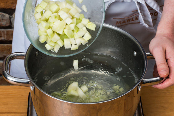 Den Kohlrabi in das kochende Wasser geben und in 4–5Min. bissfest kochen. Mit einer Schaumkelle aus dem Wasser nehmen und beiseitestellen. Das Wasser salzen, die Kartoffeln in das Wasser geben und 15–20Min. kochen, bis sie gar sind. In ein Sieb abgießen, abtropfen lassen, zurück in den Topf geben und warm halten.