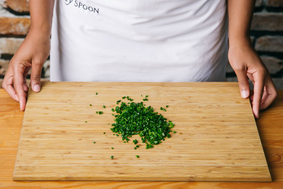 Inzwischen den Schnittlauch in feine Röllchen schneiden.
