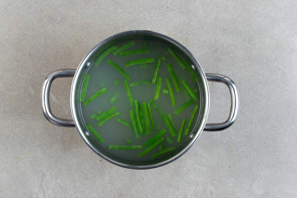 Die Bohnen in das kochende Wasser geben und bei mittlerer bis starker Hitze ca. 4Min. kochen. Nun die Gnocchi hinzufügen und ca. 3Min. weiterkochen, bis die Gnocchi gar sind und an der Oberfläche schwimmen.