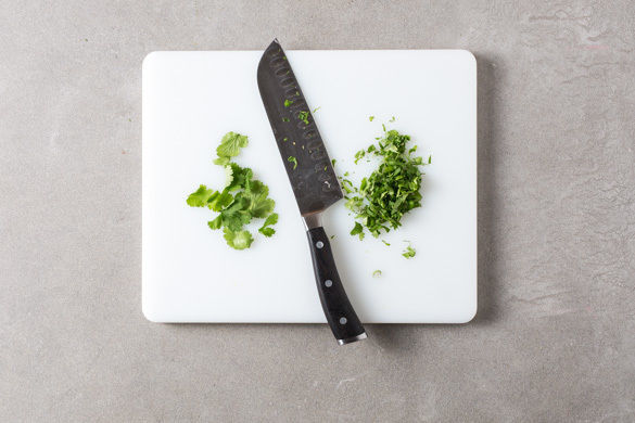 Den Koriander samt Stängeln grob oder fein schneiden und das Chili mit der sauren Sahne und dem Koriander garniert servieren. Tipp: Wer mag, kann auch nur einige Korianderblättchen vor dem Schneiden abzupfen und das Chili damit garnieren.