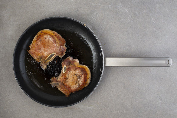 Das Fleisch mit etwas Küchenkrepp trocken tupfen. Die Sehne unter dem Fettrand mit einem scharfen Messer minimal einschneiden, so wird verhindert, dass sich das Fleisch beim Braten zusammenzieht und dadurch nicht gleichmäßig gart.