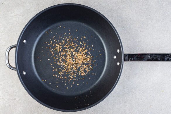Die Zwiebeln und die Paprika in einer großen Pfanne mit 1EL Olivenöl bei mittlerer bis starker Hitze ca. 2Min. anbraten, dann das Hackfleisch, die Gewürzmischung und ½TL Salz hinzufügen und weitere 3–4Min. braten.