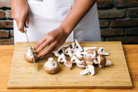 Die Pilze mit einer Pilzbürste oder einem feuchten Tuch von eventuellem Schmutz befreien, dann je nach Größe vierteln oder achteln.