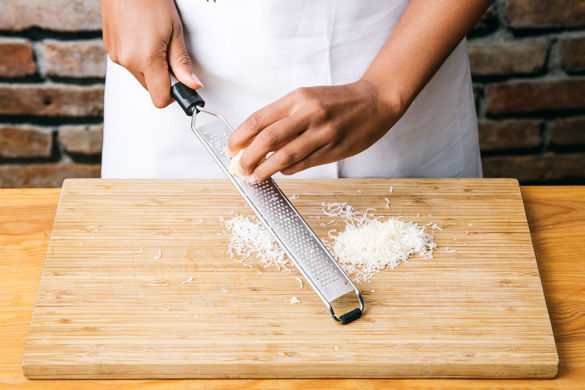Zum Schluss den Käse fein reiben. Die Sauce mit Salz und Pfeffer abschmecken und kurz vor dem Servieren 2/3 des Käses unterheben. Mit Rucola und restlichem Käse garniert servieren.