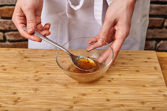 1EL Sweet-Chili-Sauce mit 1TL Pflanzenöl, 1TL Essig und je 1 Prise Salz und Pfeffer zu einem Dressing verrühren.