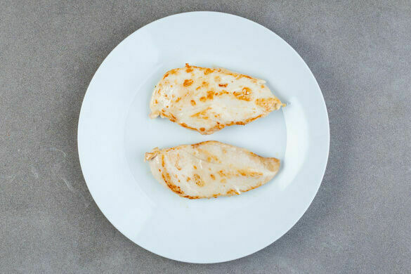 Das Fleisch trocken tupfen und jeweils horizontal halbieren, dann mit je 1 kräftigen Prise Salz und Pfeffer würzen. In einer großen Pfanne mit 2EL Pflanzenöl bei starker Hitze auf jeder Seite 1–2Min. goldbraun anbraten und aus der Pfanne nehmen.
