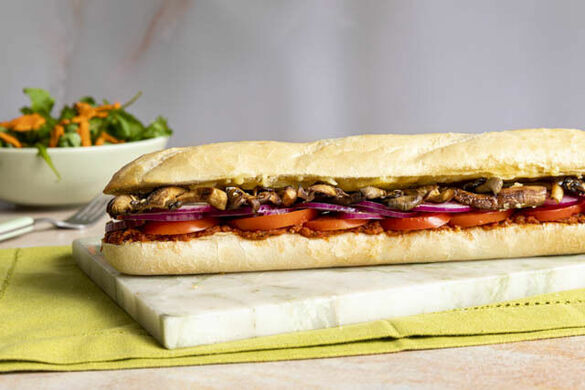Es gibt Abendbrot! Oder Mittagsbrot. Oder vielleicht sogar Frühstück? Ist ja eigentlich auch egal, wann du es genießt – jedenfalls servieren wir ein leckeres Sandwich mit knusprigem Baguette. Das bestreichen wir mit einem aromatischen Pesto und belegen es mit gebratenen Austernpilzen, Tomaten, Zwiebeln und Käse. Anschließend darf es eine warme Sauna im Ofen nehmen, damit der Käse schööön schmilzt. Dazu: knackiger Rucolasalat!