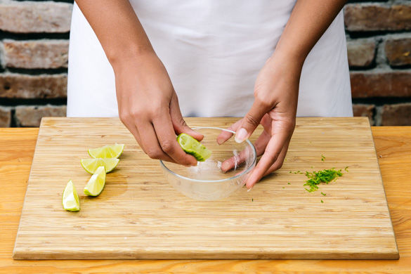 Zum Schluss die Schale der Limette abreiben und halbieren, eine Hälfte auspressen, die zweite Hälfte in Spalten schneiden. Den Abrieb und Saft unter das Curry mischen und mit den Kartoffeln, garniert mit den Cashewnüssen und den Limettenspalten servieren.