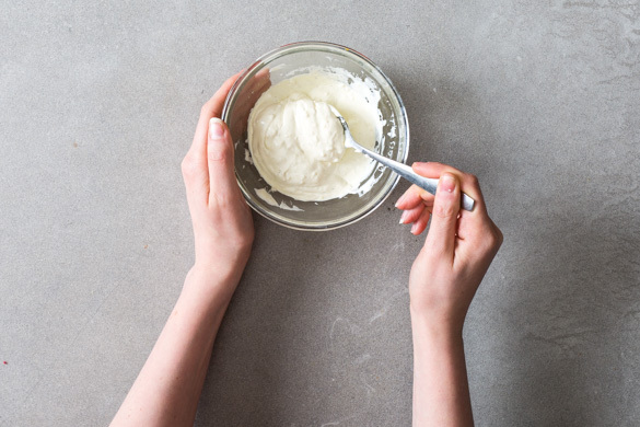 Die Crème fraîche mit dem Knoblauchöl verrühren.