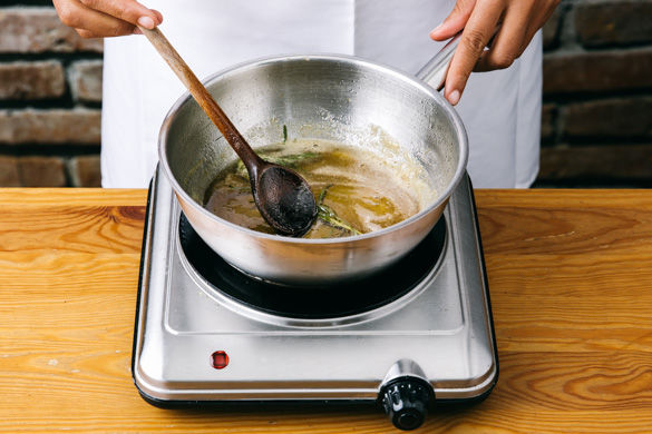 75g Zucker, Honig und 100ml Wasser zusammen mit dem Rosmarinzweig in einem mittelgroßen Topf aufkochen und je nach Größe ca. 5-10Min. auf mittlerer Hitze dicklich einkochen.