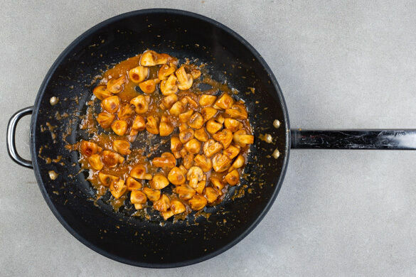 Die Pilze ggf. säubern und je nach Größe halbieren oder vierteln, dann die ½ der Pilze in einer großen Pfanne mit 1EL Olivenöl bei mittlerer bis starker Hitze in 6–8Min. braun braten. Den Vorgang mit den restlichen Pilzen wiederholen. Die Misosauce zu den Pilzen in die Pfanne geben und bei niedriger Hitze ca. 1Min. einköcheln lassen, dann die Pfanne vom Herd nehmen.