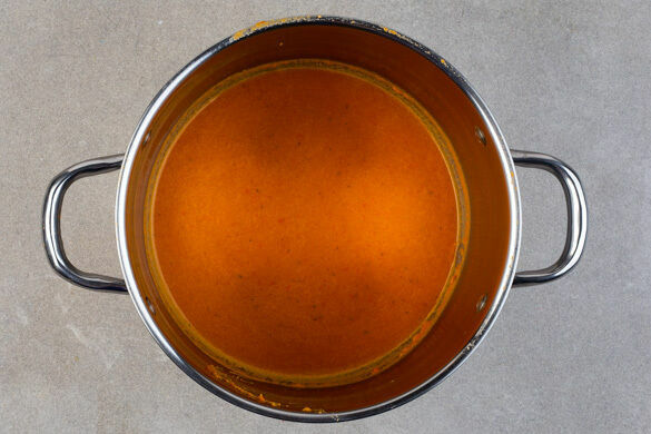 Die Süßkartoffeln und die Paprika in einem mittelgroßen Topf mit 1EL Pflanzenöl bei mittlerer Hitze 3–4Min. anbraten, dann die Gewürzmischung einrühren und ca. 30Sek. mitbraten. Die Brühe zugeben und abgedeckt bei mittlerer Hitze 10–15Min. kochen, bis die Süßkartoffeln weich sind.