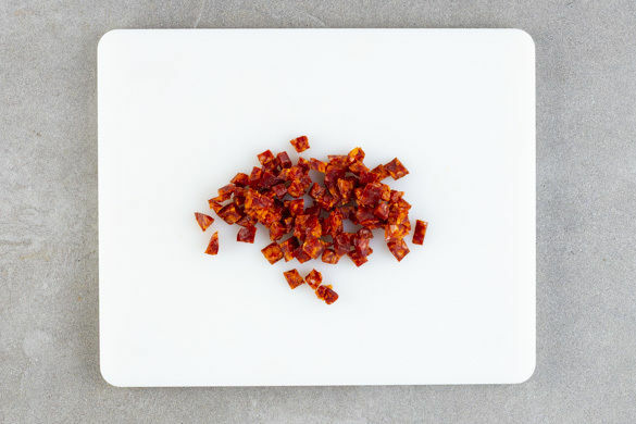 Die Chorizo ggf. von der Pelle befreien und in kleine Würfel schneiden.