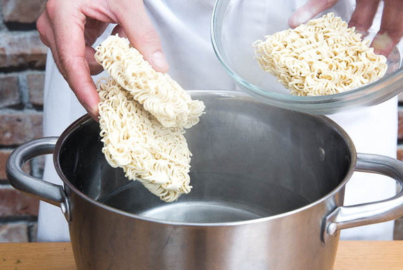 In einem mittelgroßen Topf ausreichend gesalzenes Wasser für die Nudeln zum Kochen bringen. Die Kokosraspel in einer kleinen Pfanne ohne Zugabe von Fett bei mittlerer Hitze 2–3Min. goldbraun anrösten. Vorsicht, die Kokosraspel können schnell verbrennen.