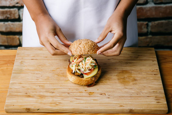 BBQ muss nicht immer Fleisch sein! Ganz im Gegenteil, diese Burger haben es in sich: die Pilze werden in einer deftigen Sauce gebraten, dazu gibt es zartschmelzenden Gouda, frische Tomaten und einen knackigen Salat aus Sellerie, Karotten und Senf.