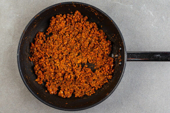 Die Zwiebeln in einer großen Pfanne mit 1EL Pflanzenöl bei mittlerer Hitze ca. 3Min. anschwitzen. Den Knoblauch ca. 1Min. mitgaren. Vom Herd nehmen und die Linsen, den Salbei, 2EL Tomatenmark, 1TL Paprikapulver und 1 Prise Pfeffer untermengen. Die Linsen leicht zerstampfen, sodass eine klebrige Masse entsteht, mit Salz und ggf. mehr Paprikapulver abschmecken.