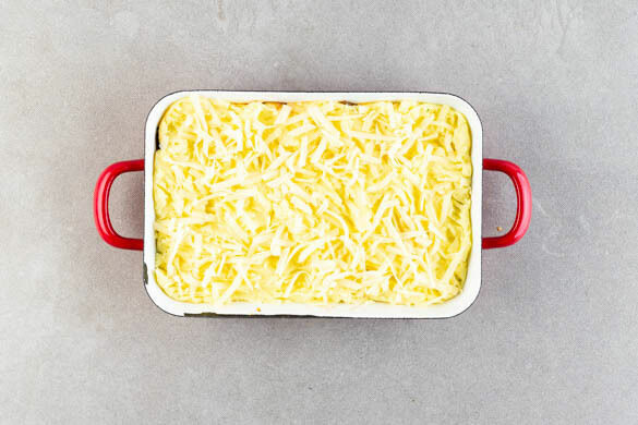 Sollte die Pilzpfanne zu trocken aussehen, ggf. etwas Wasser unterrühren. Die Pilze in einer Auflaufform verteilen, gleichmäßig mit dem Püree bedecken und mit dem restlichen Käse bestreuen. Den Auflauf 8–12Min. backen, bis der Käse goldbraun zerlaufen ist.