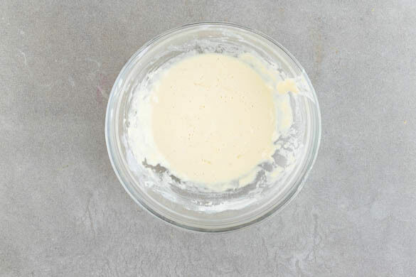 Die ½ des restlichen Mehls mit der Maisstärke und 1 Prise Salz vermengen. 1 Ei mit 75ml kaltem Wasser verquirlen, dann mit der Mehlmischung zu einem glatten Teig vermengen.