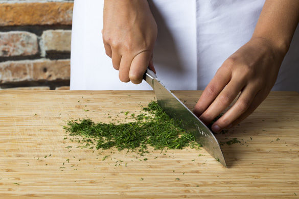 Inzwischen den Dill ohne Stängel fein schneiden.