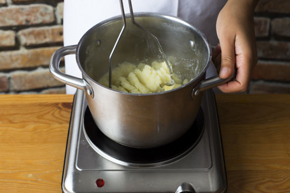 Sobald die Kartoffeln gar sind, das Wasser abgießen und mit 1-2EL Olivenöl und Milch zu einem Püree stampfen, mit etwas Salz abschmecken. Tipp: Wer mag, kann sein Püree mit etwas Butter verfeinern. Das Kartoffelpüree gemeinsam mit dem Hackbraten und Sauce servieren.