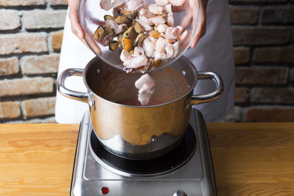 Meeresfrüchte sind etwas besonderes beim Abendessen und werden heute noch mit Safran verfeinert. Die dünnen Fäden werden noch heute per Hand aus dem Stempel der Krokusblüte gezupft und getrocknet. Dazu gibt es fluffigen Couscous und geröstete Mandelblättchen.