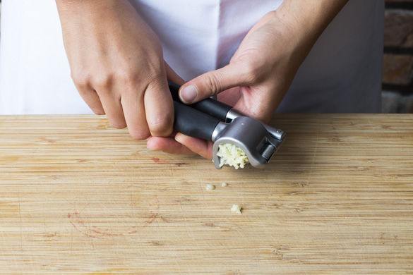 Den Knoblauch auspressen oder sehr fein hacken.