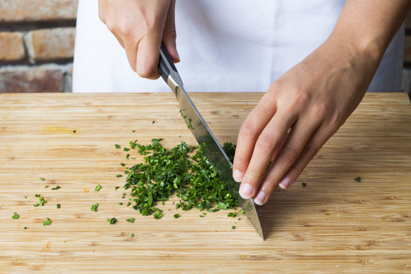 Die Petersilie samt Stängel fein hacken und unter das Sauerkraut mischen und mit dem Ofen-Gemüse und den Schweinemedallions servieren.