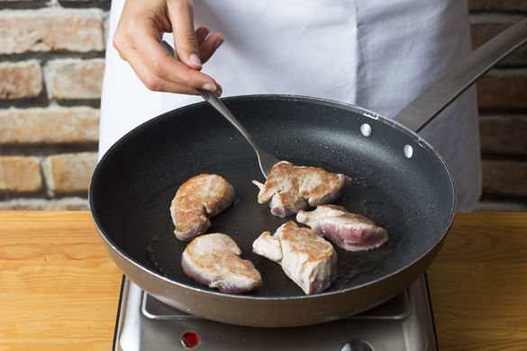 Das Schweinefilet von evtl. Sehnen befreien und in ca. 4-5 Medaillons schneiden. In einer mittleren, ofenfesten Pfanne die Medaillons mit 1-2EL Olivenöl ca. 1-2Min. von jeder Seite scharf anbraten, dann für ca. 3-5Min. im Ofen garen lassen und mit Salz und Pfeffer würzen.