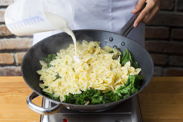 Bei dieser Pasta-Kreation hat sich unsere Köchin Hannah in unsere Herzen gekocht. Die Sauce aus Miso-Pasta, Cashewnüssen, Knoblauch und Zitrone ist frisch und leicht. Dazu gibt es gebratene Shiitake-Pilze und Grünkohl und luftige Farfalle-Pasta.