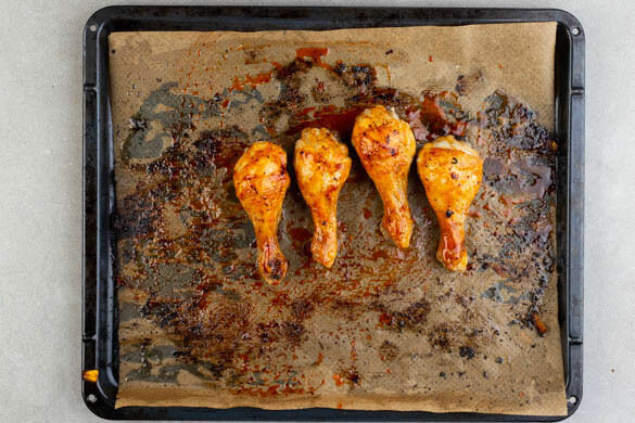 Den Backofen auf 240°C (220°C Umluft) vorheizen. Die Kürbisse schälen, mit einem Löffel entkernen und in 1–2cm große Würfel schneiden. Die Drumsticks trocken tupfen und mit dem Kürbis auf ein mit Backpapier ausgelegtes Backblech geben. Mit 2EL Pflanzenöl beträufeln, mit ½TL Salz würzen und ca. 10Min. auf der mittleren Schiene backen.