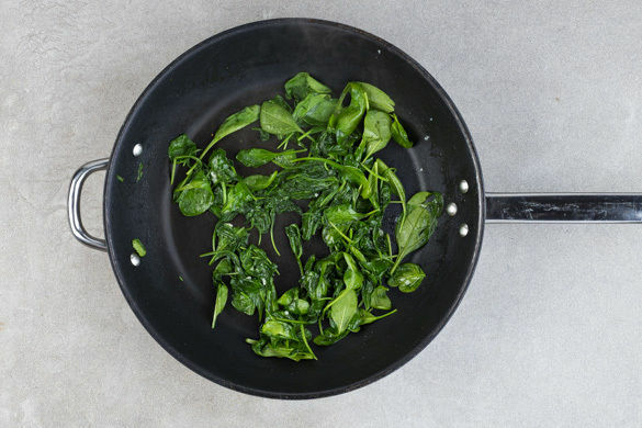 Den Knoblauch und den Spinat in der Pfanne oder dem Wok mit 1EL Pflanzenöl bei mittlerer Hitze anschwitzen, bis der Spinat zusammengefallen ist. Den Reis mit 2TL hellem Essig verfeinern und die Karotten, das Pilzgemüse, das Hackfleisch und den Spinat getrennt voneinander darauf anrichten. Die Chilipaste dazu reichen.