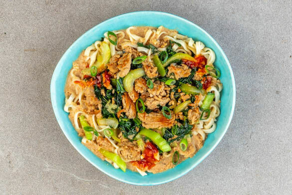 Unsere kulinarische Reise führt uns heute nach China, wo dieser Klassiker herkommt, in dem scharfe, süße und nussige Aromen perfekt zusammenfinden. Saftiges Schweinehackfleisch, leckere Weizennudeln und zarter Pak Choi sind die Hauptkomponenten. Übrigens: Der Name „Dan Dan“ kommt von den Tragestangen, auf denen die Straßenverkäufer traditionell ihre Nudeltöpfe befestigt haben.