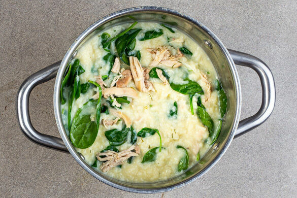 Heute gibt es mal wieder einen „heißen“ Tipp aus der Marley Spoon’schen Kochschule: Wie bindet man eine Suppe mit Ei, ohne dass dieses in der heißen Flüssigkeit nach Herzenslust zu stocken beginnt? Kein Problem: Mit unseren Tipps ist das kindereierleicht. Unsere Suppe mit Pulled Chicken, Reis, Fenchel, Spinat und Dill erhält dank „Avgolemono“, einer griechischen Ei-Zitronen-Sauce, eine wunderbar cremige Konsistenz. Lecker!