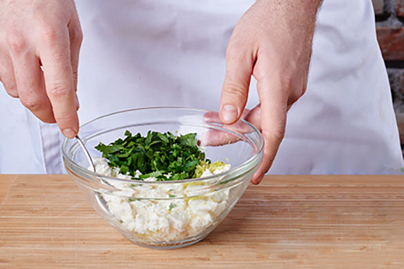 Inzwischen den Käse in eine Schüssel fein krümeln. Petersilie fein hacken, mit 1TL Zitronenschale zum Käse geben. Alles gut vermengen und für den Moment beiseite stellen. Grünkohl grob schneiden und ggfs. harte Stängel entfernen.